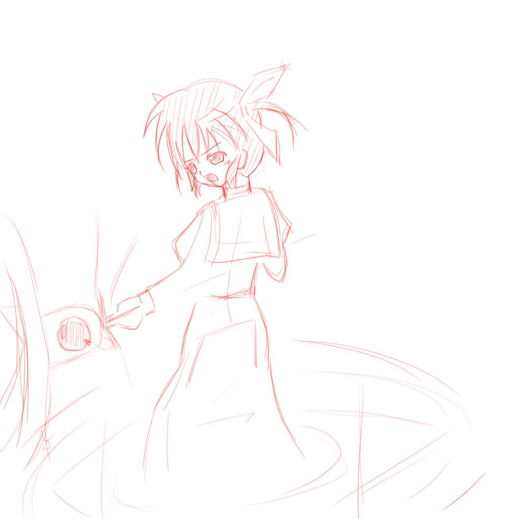 別に興味ねーよwww って人はお早めに違うページへ飛びましょう。 逃避先はここへどうぞ さて、この先絵の話 さて、絵を描き始めて約7年 昔に比べて多少は上達したのでしょうか あまり変わってませんね 最近の私の絵の描き方を見てみましょう。 1、なんとなく髪の毛の中央付近からかき始める(ぇ 2 頭の輪郭終わったら、合わせて肩幅調整 3 ぶっつけ本番いきなり残り全部描く(マテ 4 完成と同時に絶望に浸る な、なんだこりゃぁ・・・ あまりに描き方がひどいので たまには真面目に下書きとか構図とか色々考えて描いてみよう 線が赤いのは気まぐれです。 どう見ても胴長です本当に(ry 右の余白に書いた横向きが当初の予定等身。 胸~肩 腹~腰の辺りが伸びているのが分かりますね おかげで小さい制服着たグラマラスな娘になりました(マテ 違和感が消えないので諦めて最初から描く事に。 さあ、骨格(中央の線部分)描いて~ 次にボディーライン描いて~ 服入れて~顔描いて~ よし、これで描き直ったぞ!! どう見ても別人です本当に(ry ちょうどこの前リリカルなのは見たんですよ・・・ えぇ、なかなかいいアニメでした。 でもなのは声(田村ゆかり)は最後までしっくりこなかったよorz と、まあ感想は置いといて。 結論、うろ覚えでキャラ描くもんじゃない あれ、ここってどうなってたっけ・・・? と、至る箇所で詰まります。 結局自己流で頭から描くのと 多少真面目に考えて描くのでは大して違いがありません。 いや、真面目といっても色々基本無視してるのですが・・・ まあつまりは、絵がうまくなる為には ひたすら描くしか無いということですね。 なのは、は後日もう一枚描くかも知れません。 A's1話の上着破壊されたverの戦闘服が好きなんです(殴 これから絵を描く方、ちゃんと基本は守ろうね☆ 何事も基礎が大切ですよ、というお話でした。 私みたいに基礎無視して7年も経ってしまうと今更修正できないので ご利用は計画的に PR