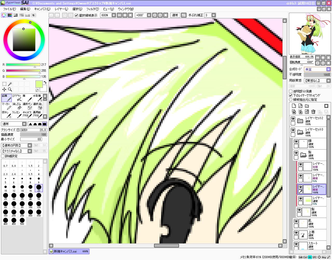 ウルトラ手抜きですが(マテ そろそろ部屋の片付けしないとなぁ・・・ 休み中はなるべく絵描きつつ 何処から片付けるか悩み中。 良くここまで散らかしたな私。 塗り進行率20% 髪の毛終了。超手抜き30分(殴 拡大すると粗が目立ちすぎ。 後応援バナー一本追加。 あぁ、大きいのが使いたかったけどスペースが。 別枠に飛ばしてバナー専用ページとか作れば良いのかなぁ TOPはなるべく軽量化しておきたいし・・・うーん なんか知り合いの影響でのいぢ勢力が拡大しつつ(ぇ c72で出たみけおう様の画集注文しちゃった。 メロンの予約は代引き限定だから高いのが難点だなぁ それでも店行くより安いから田舎は困るorz PR