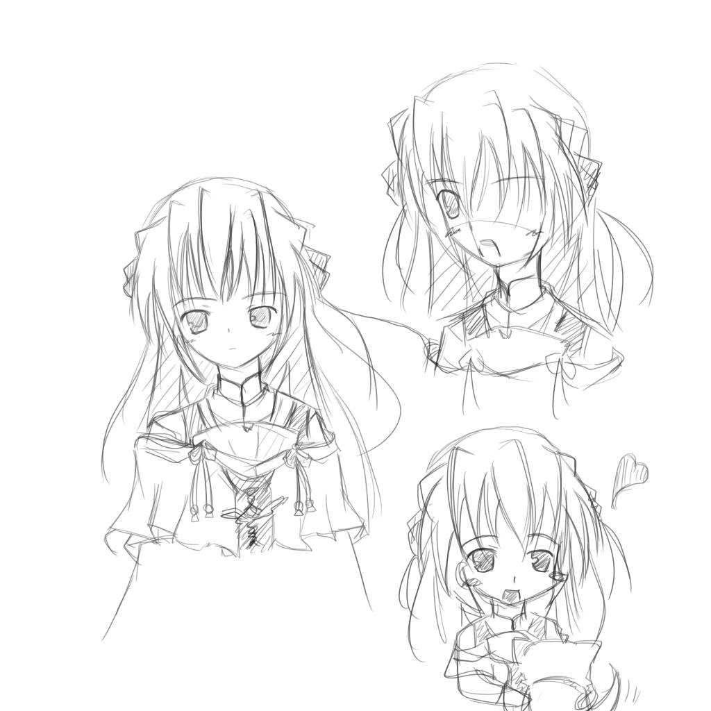 だ、ダメです艦長!! 私の画力じゃ全然歯が立ちません!!! 構図が決まらないで悶々としてたので とりあえず何パターンか顔描いて慣れてみる。 なんか低年齢化してないか 右下のは犬が描けないのでデフォルメして誤魔化す! 左のは一番最初に公式ボケーと見ながら描いたもので 恐らく一番エステルっぽいです。 右上は最初に描いたのを覚えてるか試すのに ちょっと角度を変えてみたり表情付けてみたりとテスト。 最後に描いたのは右下 怒らせてばかりじゃ可愛いので(マテ デフォルメも試してみるテスト。 ちゃんと正面と左右3種描いて見ましたが 角度的には大して正面と変わってない気がorz ちなみにPS2夜明けなは快適です セーブロードも殆ど気にならず バックログ機能が恐ろしく高性能です。 エステルが物凄い可愛いので 翠とエステルに8000円分は価値があります(マテ と、言う事でまたゲームがひと段落したら描きますよー 多分・・・多分・・・多分・・・ PR