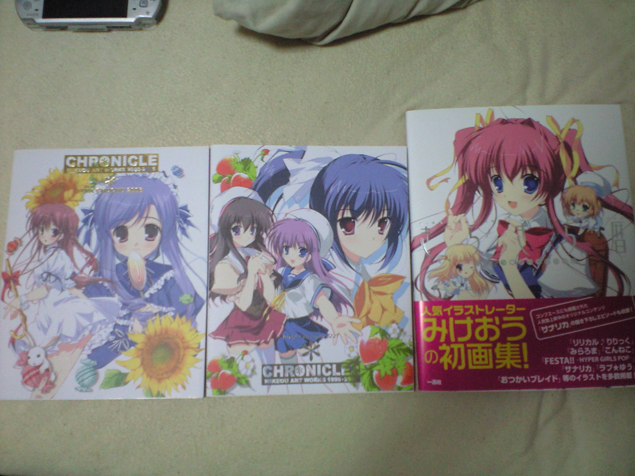 21歳の烏丸です。 21歳と言えばおじさんの仲間入りですね。 ウェルカム俺インおじさん世界。 ということで絶賛大学の課題とテスト用のノート作成中です。 毎年この時期に誕生日とかテストが来たと知らせるだけですね。 なくていい、誕生日なんて。 ですが今年はいいことも。 友人に画像左の画集をいただきました\(^o^)/うひょー 中央と右は前に自分で買ったものですが 左のは発行がちょっと古くて地味に見つからなくて (名古屋まで出てる暇もなかったので) 諦めてたのですがなんと今日貰ってしまった。うひょおおお やっぱりみけおう先生の絵はエロ和む(今年の流行語に違いない)わー ハァハァ さて21歳になったし21歳の目標でも。 目標:太ももとぱんつ