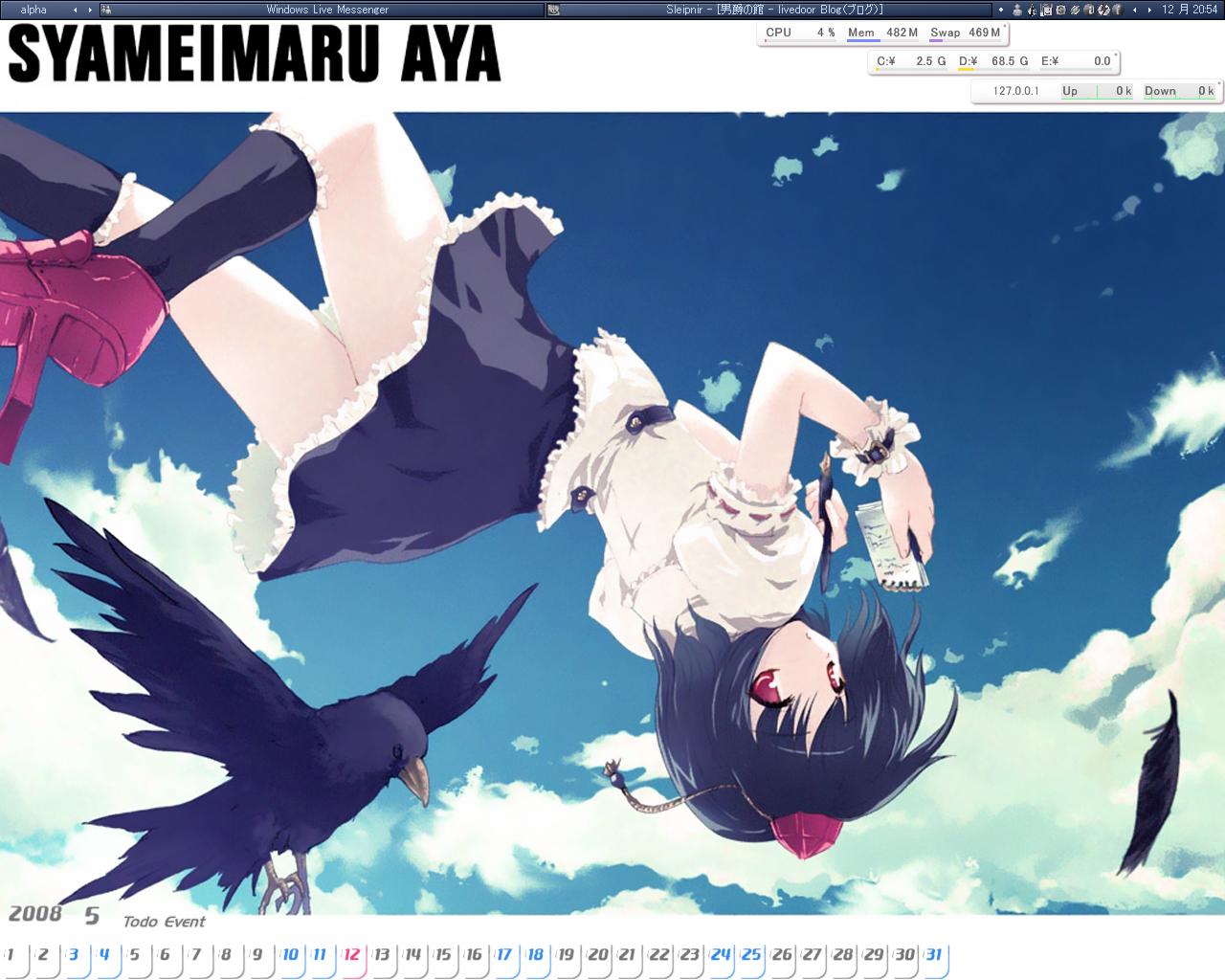 うひょー!でも開封したくないぜ・・・でも開封したい・・・ あぁ、もう一個誰かください。と思ったら既に完売風味なのね・・・ 再販フェイトも瞬殺だったそうで・・・ はやても瞬殺で買い逃したらどうしよう、考えただけで鬱死しそうだorz ここからデスクトップバトン。 ▼あなたのデスクトップを晒して、一言どうぞ。 他にはやてverとスカーレット姉妹verと銀様verとLがあります(ぇ 奈々子はサイズと配色の関係で断念。 壁紙が荒いのは無理して伸ばしたからです(ぉぃ フォトショでも限界ってもんはあるのよっ ▼OSは何? WinXP-SP2 SP3なんざ検討してません。 ▼これはあなた個人のパソコン?職場や家族共有のパソコン? 家の自分用。 スペックはというと、 フルスクリーン アンチエイリアス*4 16bitテクスチャ、頂点処理でらぶデス2を動かし 1キャラ28FPS、3キャラ15FPS、5キャラ7FPSぐらい(ぇ 最近グラボが怪しい。 ▼この壁紙は何?どこで手に入れた? 作者サイト。壁紙にするに当たって加工しちゃってますが。 個人利用の範囲ってことで・・・ って、晒しはいいのだろうか\(^o^)/ ▼壁紙は頻繁に変える? 気が向いたら。でもいくつかセットがつくってあるので 右クリックから変更できます。今のコンセプトは蒼。 ▼デスクトップのアイコンの数はいくつ? 見ての通り0、ですが右クリックから色々呼び出せます。 実際は81個のアイコンがあるという。 表示しないからデスクトップは実質一時保存の場となってます。 ▼ファイルやショートカットがゴチャゴチャしている、許せる? 別にその人が使いやすいならいいと思うけど 見た目的にはよろしくないかなぁ、なるべく見える数は減らしたい。 ▼何かこだわりはある? 利便性。自分が使いやすければおーるおっけー! ▼今回、このバトンが回ってきてからこっそりとデスクトップを整理した? メッセの窓を一時的に全部移動して隠しました(ぉ ▼最後に『この人のデスクトップを覗きたい』という5人。 自分のデスクトップを見せたい露出狂の人を募集(ぇ みられるのいいのぉぉぉぉ!!とかいうMな人でもOK。