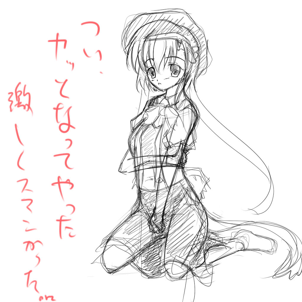 大学の課題やってます\(^o^)/ まぁ、もともと行く気なかったんで問題なっしんぐですが。 今日描いた落書き 大人はやて1枚 なんかデレ入ってる妖夢1枚 4~5頭身を描く為に 紙を横向きにして足先まで収めるテスト。 こいつはやべぇ やっぱり6ぐらいが個人的には描きやすいかな・・・ |